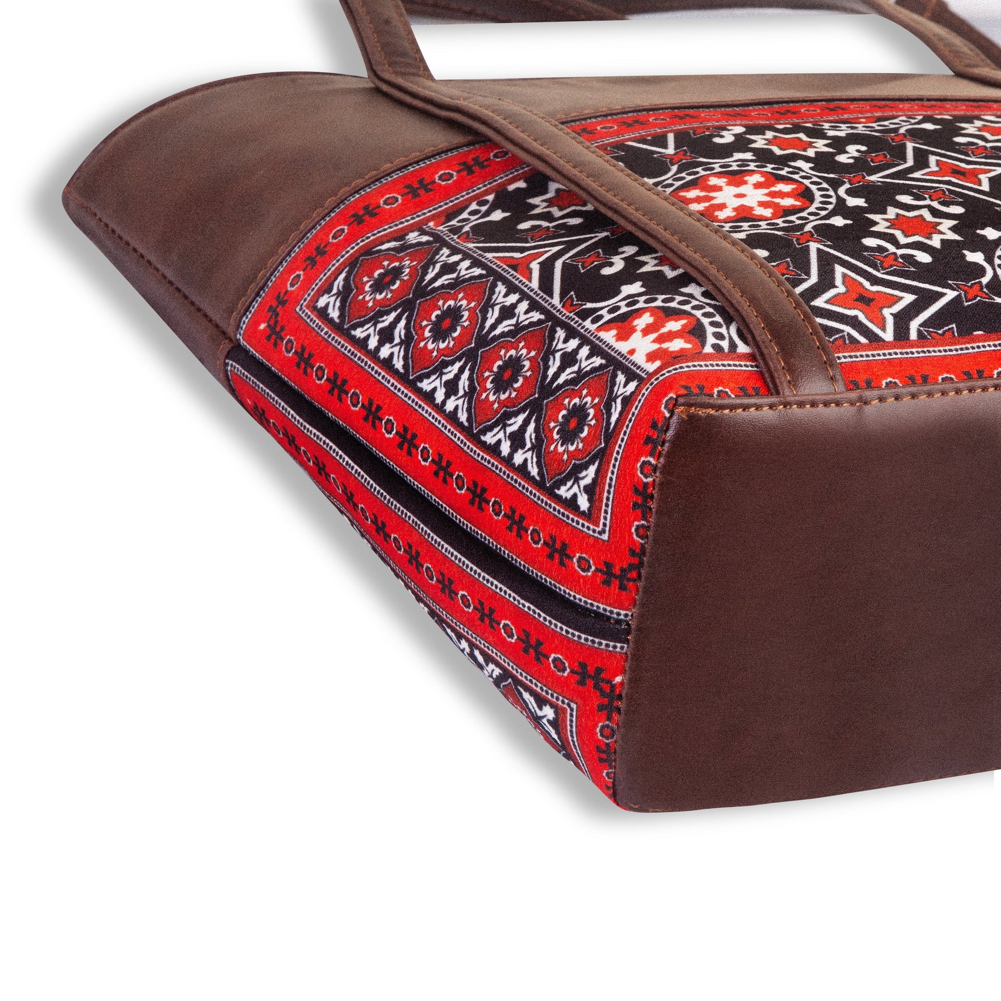 This Ajrak art handBag is made from fabric & premium vegan leather, especially designed by the finest designers to promote our enrich cultural values through this new collection series launch at Bag X.