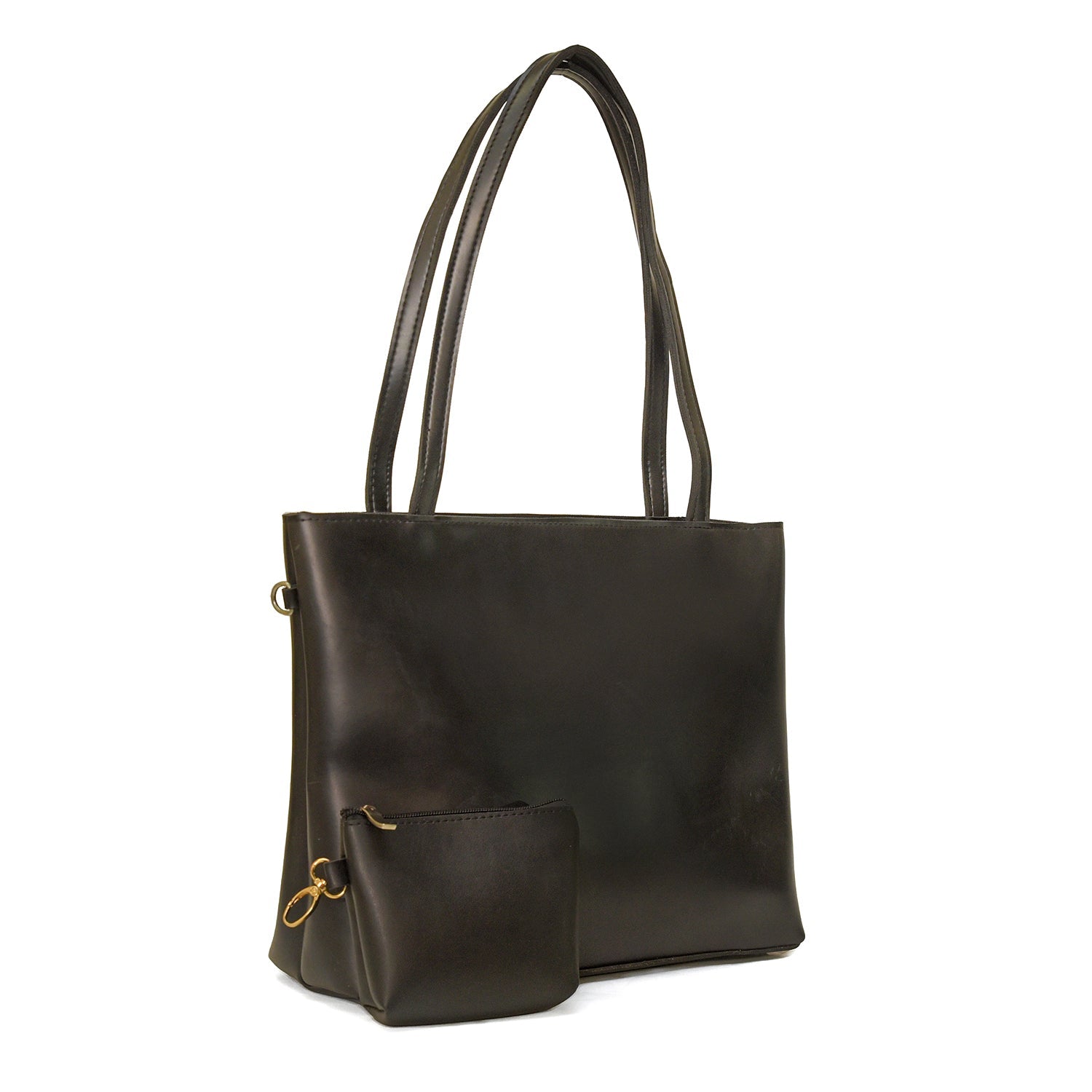 This Prague tote bag is made with premium synthetic leather and a soft inside lining, offering both durability and style. With its spacious design and an additional pouch, it provides ample storage for all your essentials. The sleek black matt finish adds a touch of elegance to any outfit.