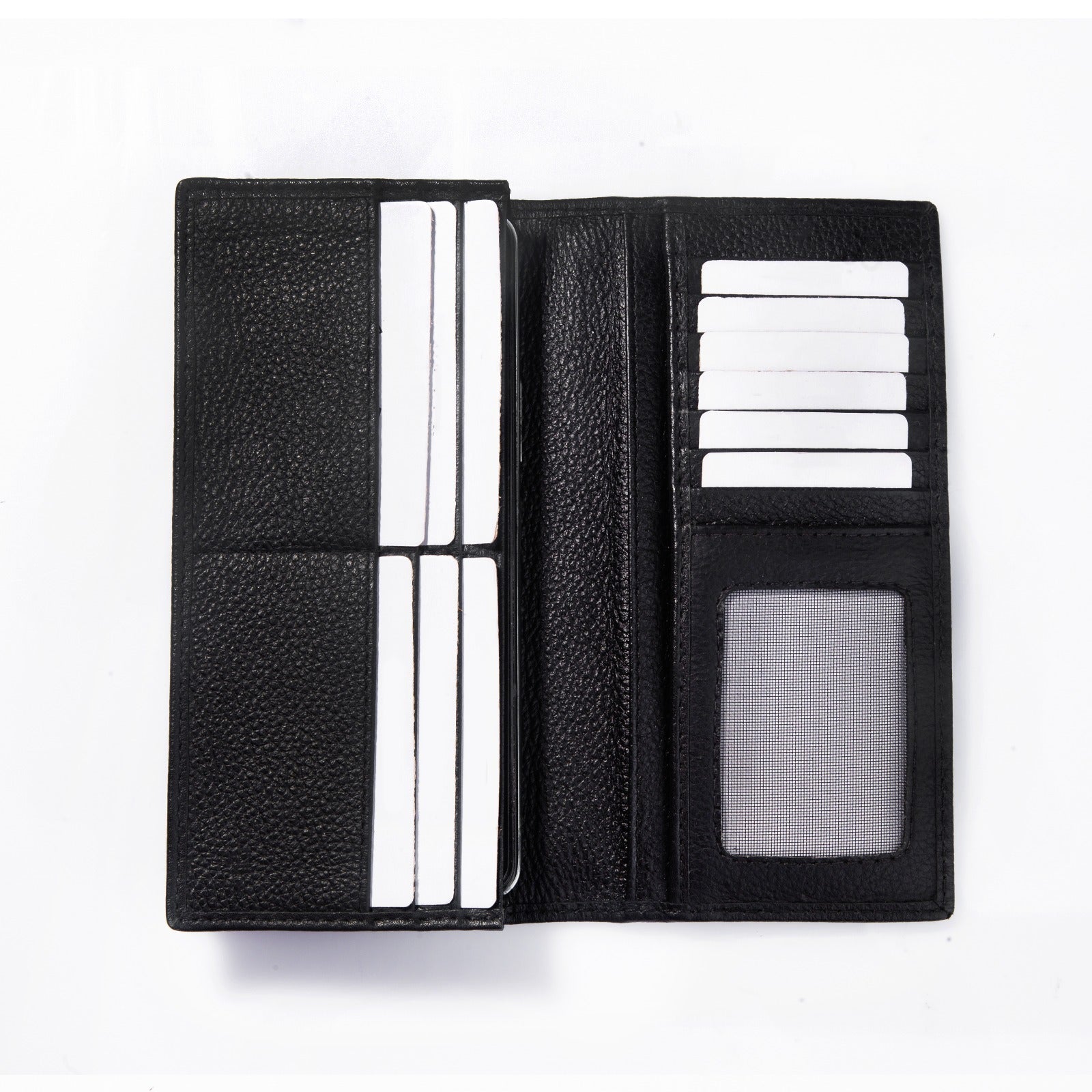 This premium quality black leather wallet is a must-have accessory. With a spacious design, it houses a variety of cards and your mobile, keeping them organized and easily accessible. Upgrade your style and practicality with this sleek and durable wallet.