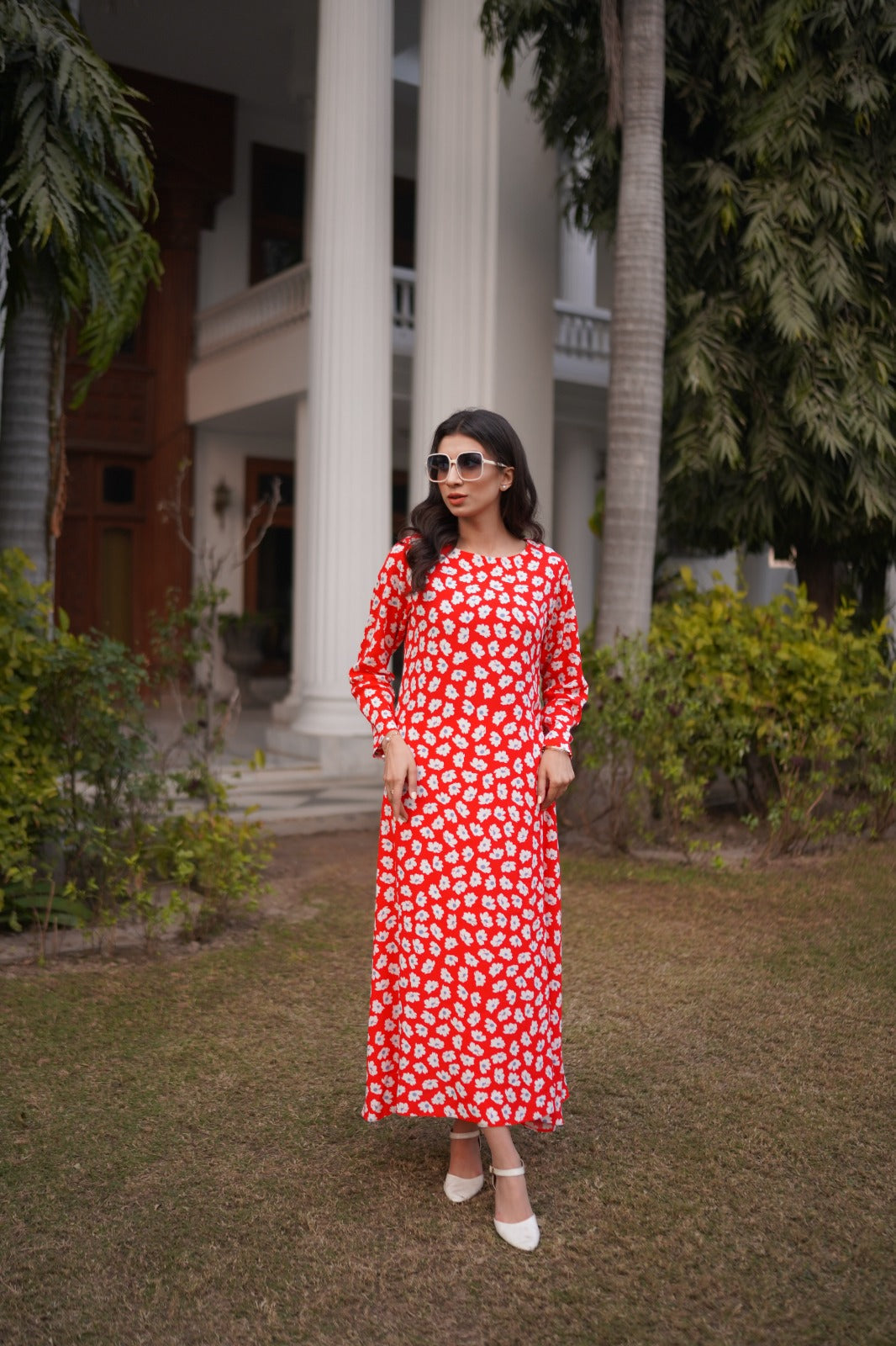 Trendy Mia Red with micro-floral print made in soft Georgette fabric