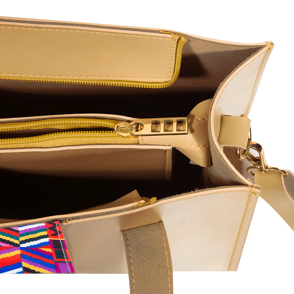 This Stylish Sway Bag is made from premium vegan leather, making it a lightweight and durable accessory. The spacious main compartment has a top zipper closure to securely store your items with ease. The additional studs at the bottom of the bag provide extra protection against scratches, making it perfect for everyday use and university life. Inside the compartment with zip closure allows you to synchronize your belongings. The front contrast black and white stripe makes this trendy bag more attractive and matches with your gorgeous outfits.