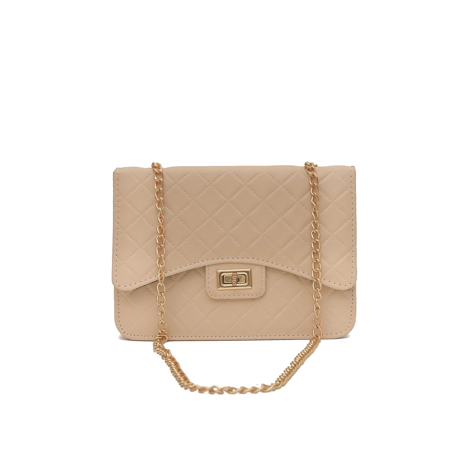 TULIP BAG is a modern fashion choice. It offers a TULIP front flap design with a golden chain, creating an adjustable fit for multiple body types. Crafted with high-quality materials and a stylish hue, this bag is sure to be an eye-catching accessory for any outfit.