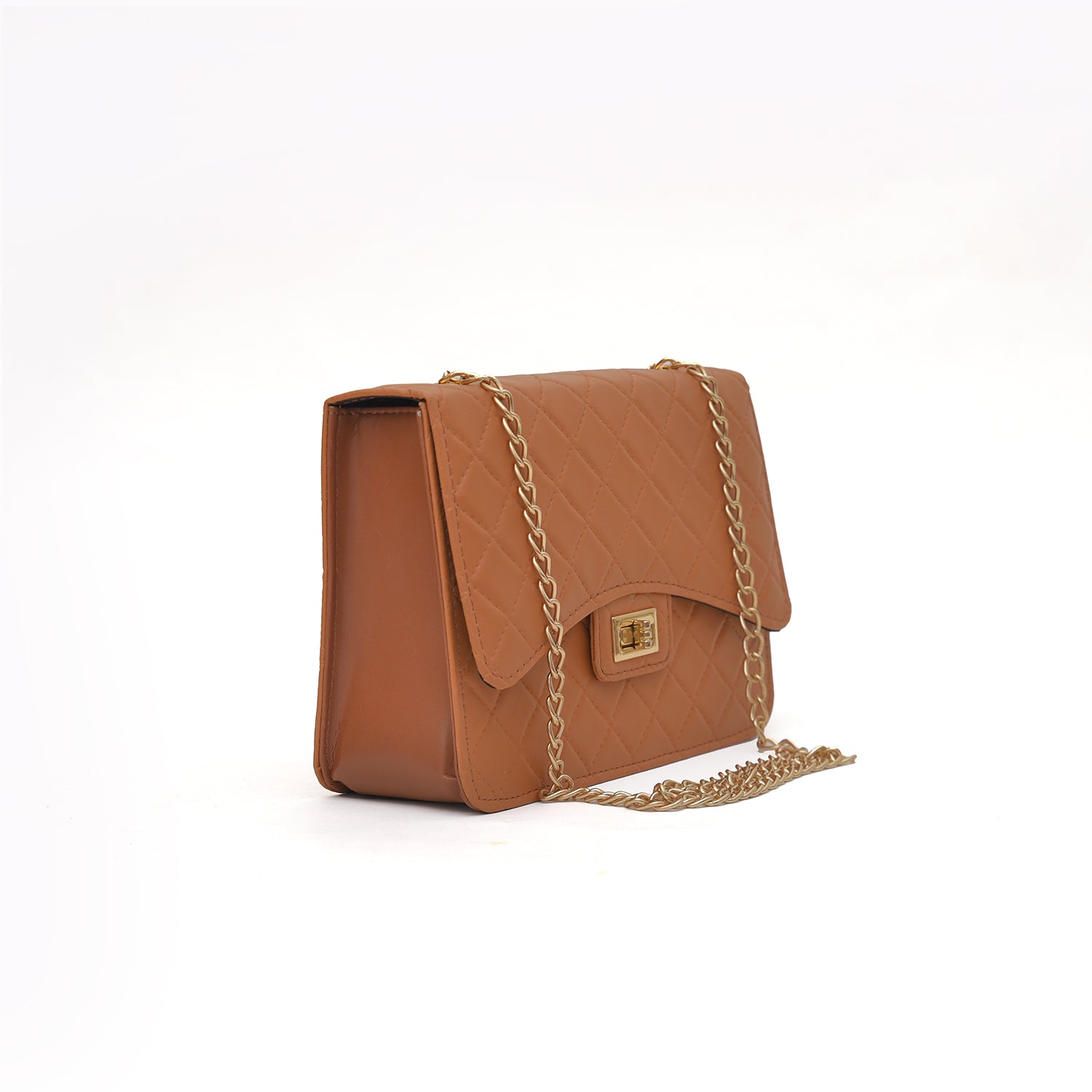 TULIP BAG is a modern fashion choice. It offers a TULIP front flap design with a golden chain, creating an adjustable fit for multiple body types. Crafted with high-quality materials and a stylish hue, this bag is sure to be an eye-catching accessory for any outfit.