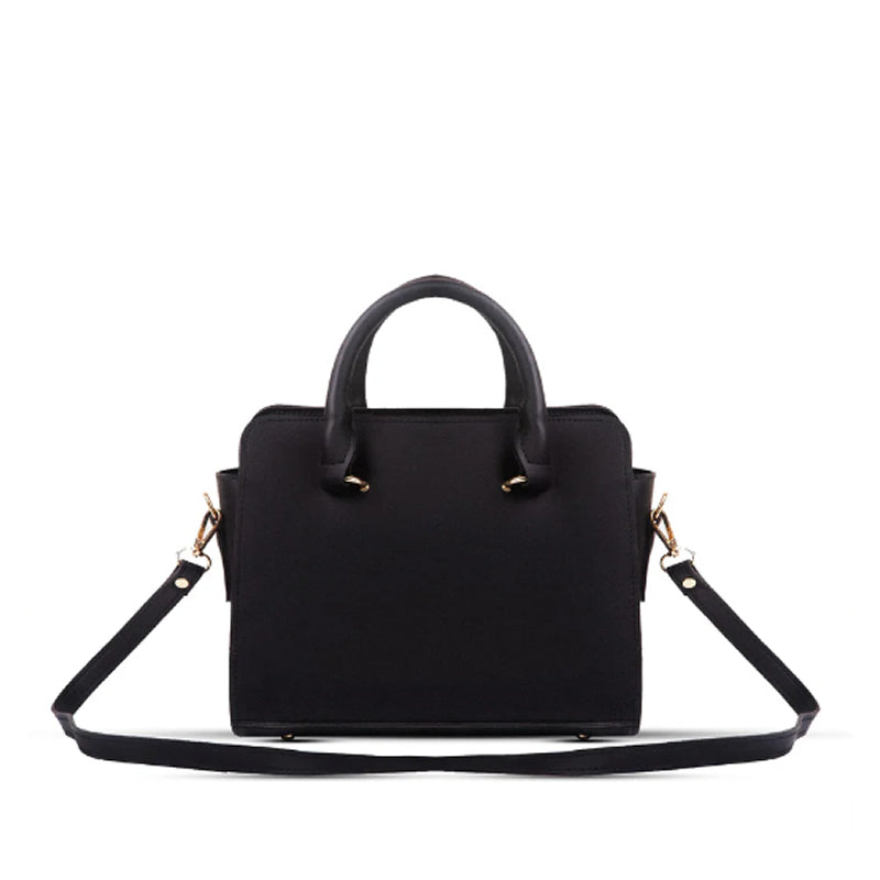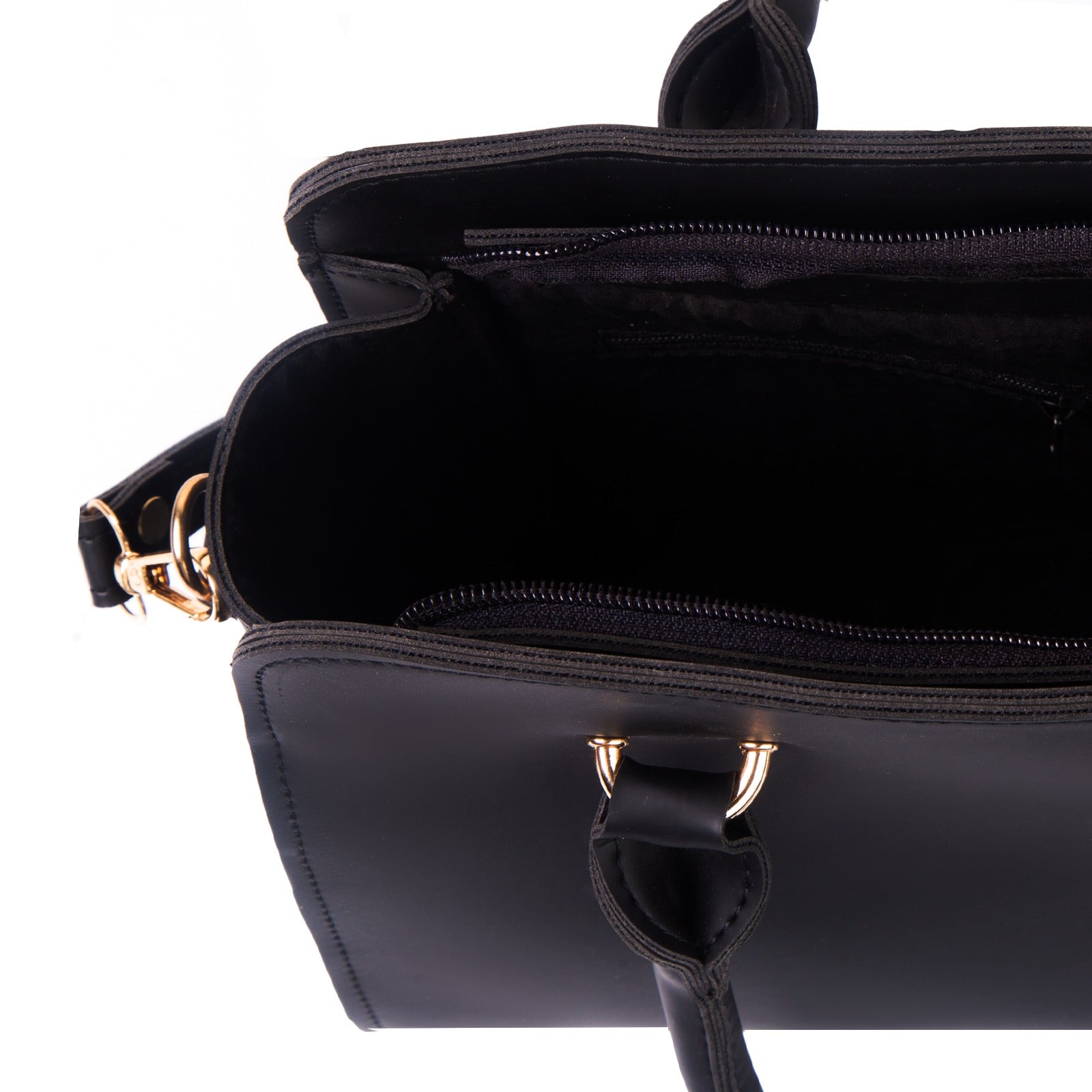 This Urban black HandbBag is made from premium vegan leather, making it a lightweight and durable accessory. The spacious main compartment has a top zipper closure to securely store your items with ease. The additional studs at the bottom of the bag provide extra protection against scratches, making it perfect for everyday use and university life. Inside the compartment with zip closure allows you to synchronize your belongings. The front contrast black and white stripe makes this trendy bag more attractive and matches with your gorgeous outfits.