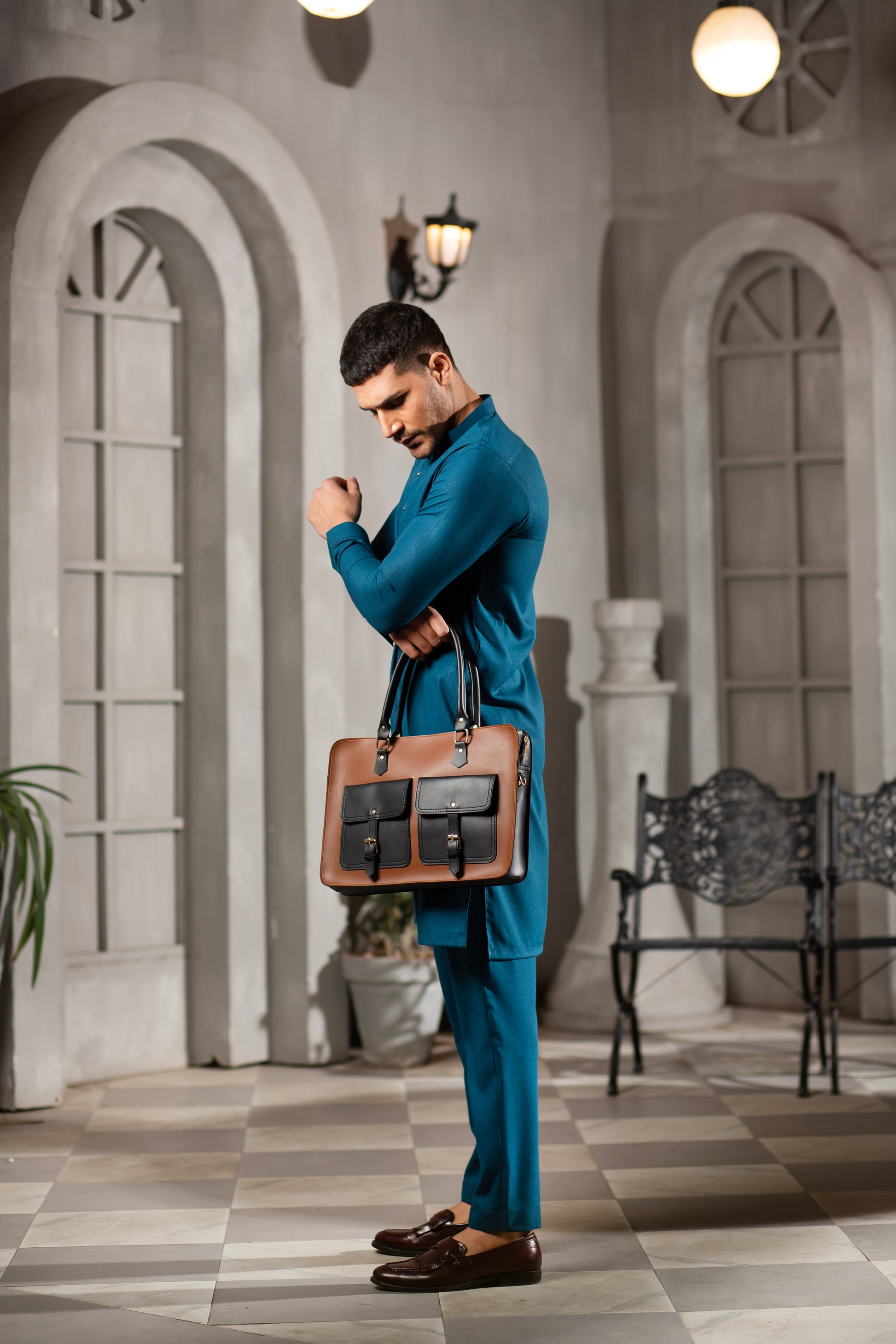 Introducing our sleek and stylish laptop bag made of high-quality vegan leather, perfect for the modern and conscious individual on the go. Measuring 16 inches in width and 14 inches in height, this bag is designed to comfortably fit laptops up to 15.6 inches, along with other essential items such as notebooks, documents, and charging cables.