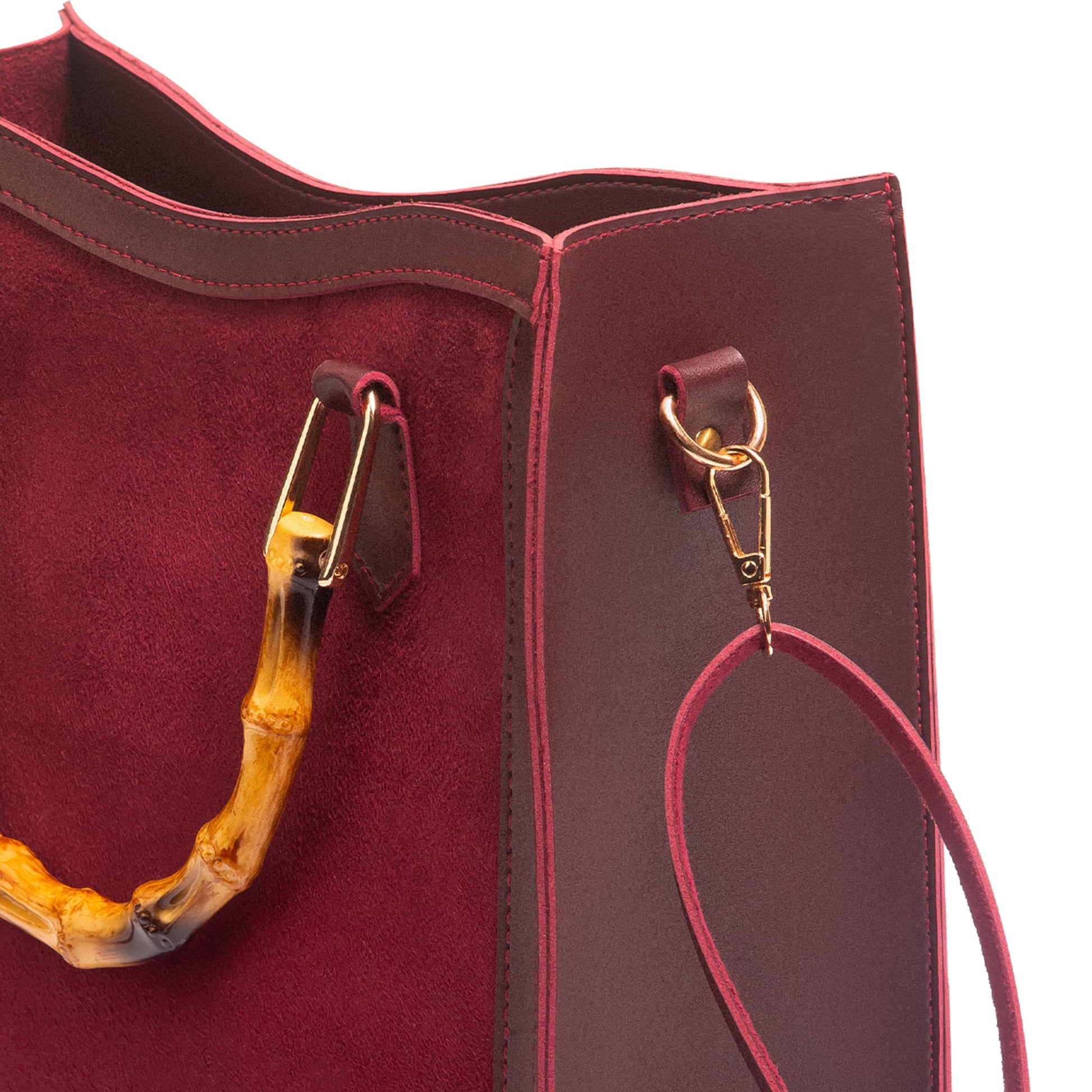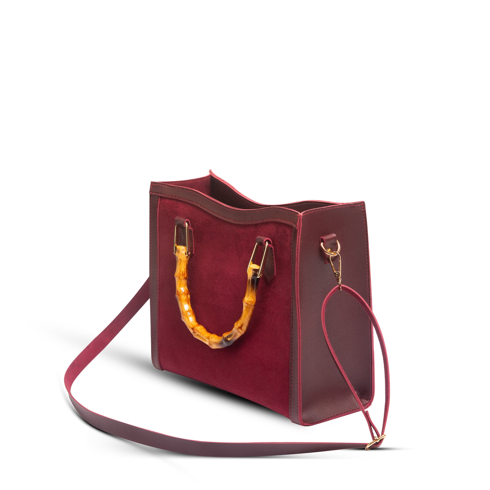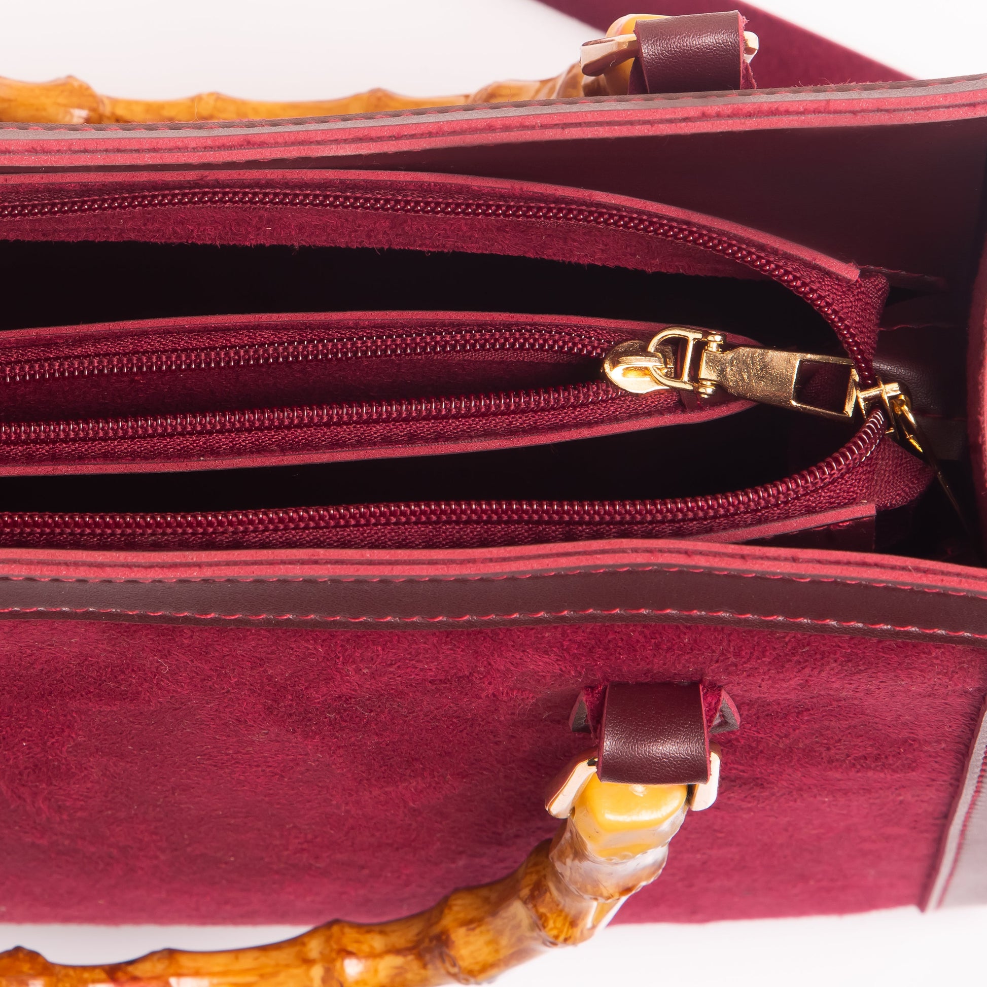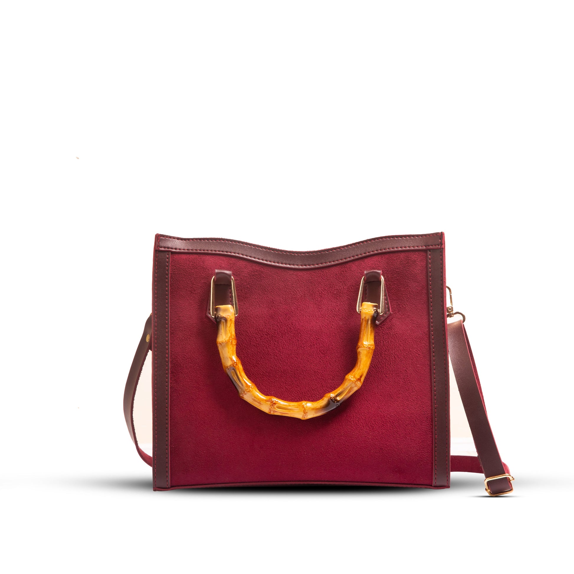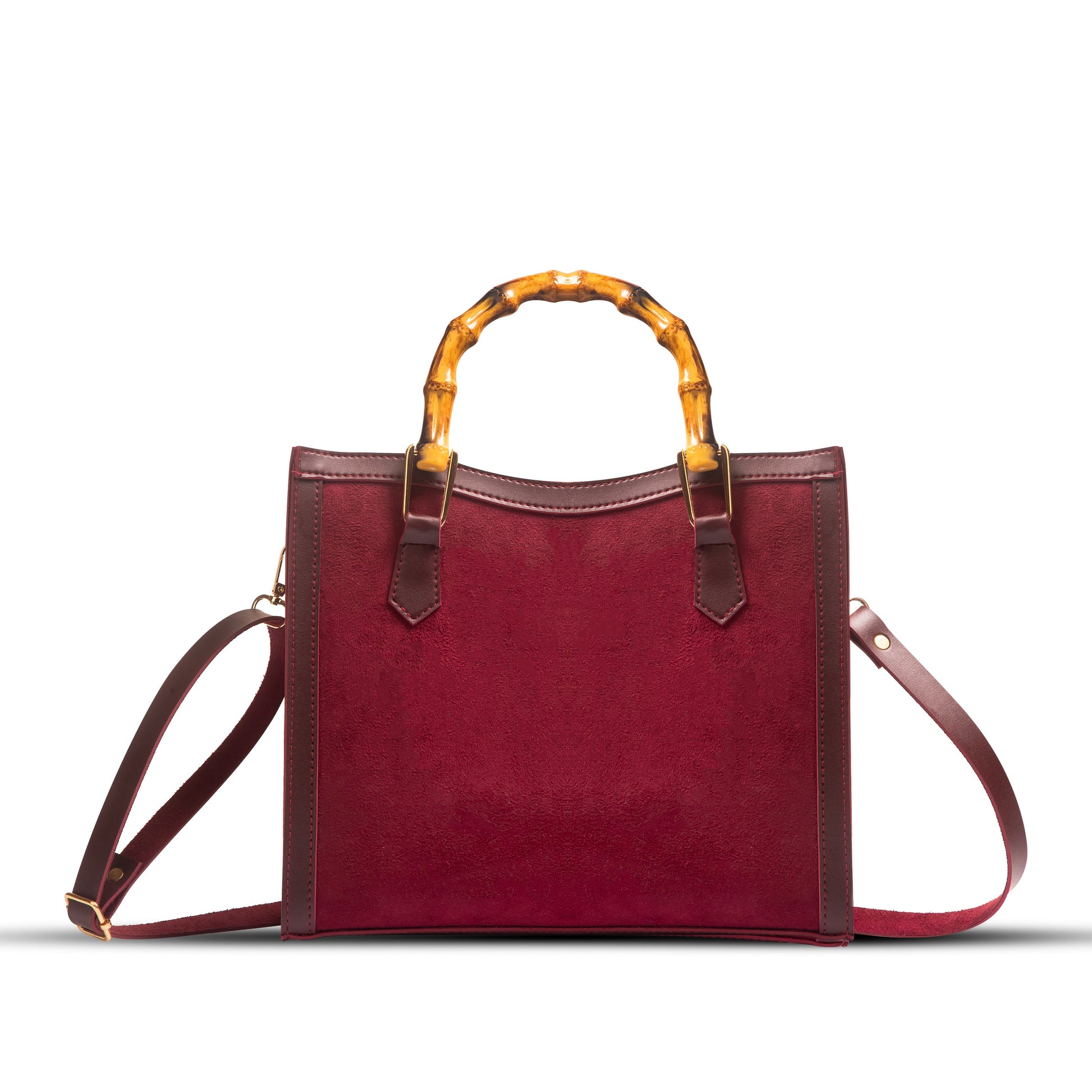 Elegant and exquisite, you'll find yourself reaching for this classic bag no matter what the season. Retro style top wood handle, stitched in the same leather at the edges, added Bonus points to its gorgeous look. The most unique feature is the combination of suede leather with synthetic leather. This size also opens up to reveal a capacious inner compartment.