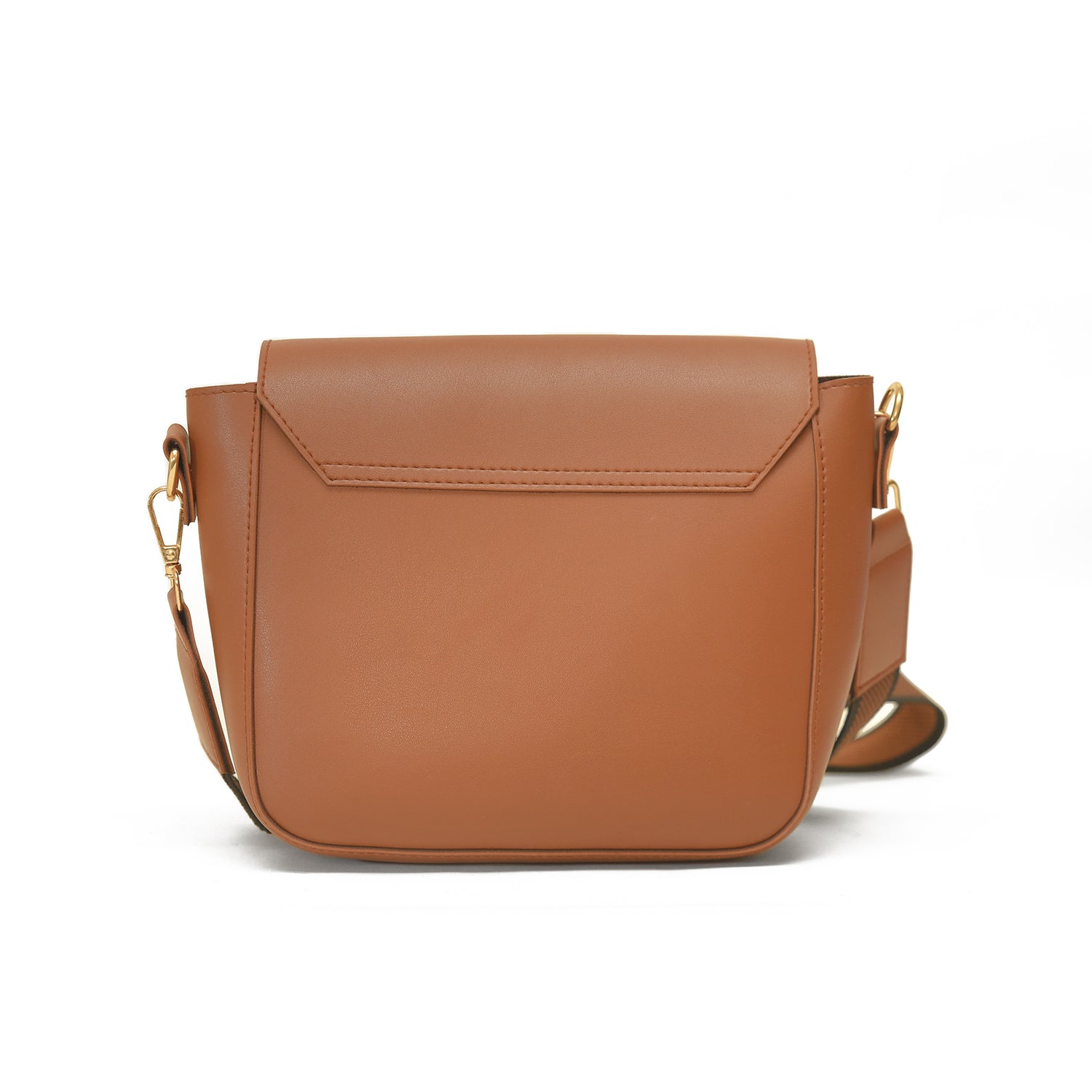 Upgrade your style with the X-side bag. Made with premium vegan leather, this crossbody bag features a stretchable strap in black and brown contrast for comfortable wear. Keep your essentials organized with the inside compartment and pockets, while the unique golden front lock adds a touch of elegance.