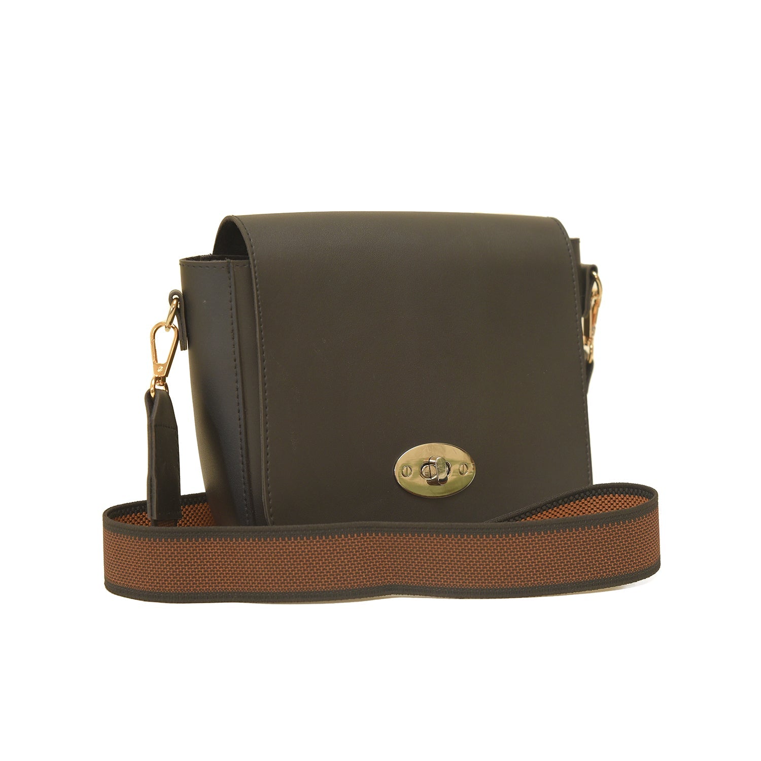 Upgrade your style with the X-side bag. Made with premium vegan leather, this crossbody bag features a stretchable strap in black and brown contrast for comfortable wear. Keep your essentials organized with the inside compartment and pockets, while the unique golden front lock adds a touch of elegance.